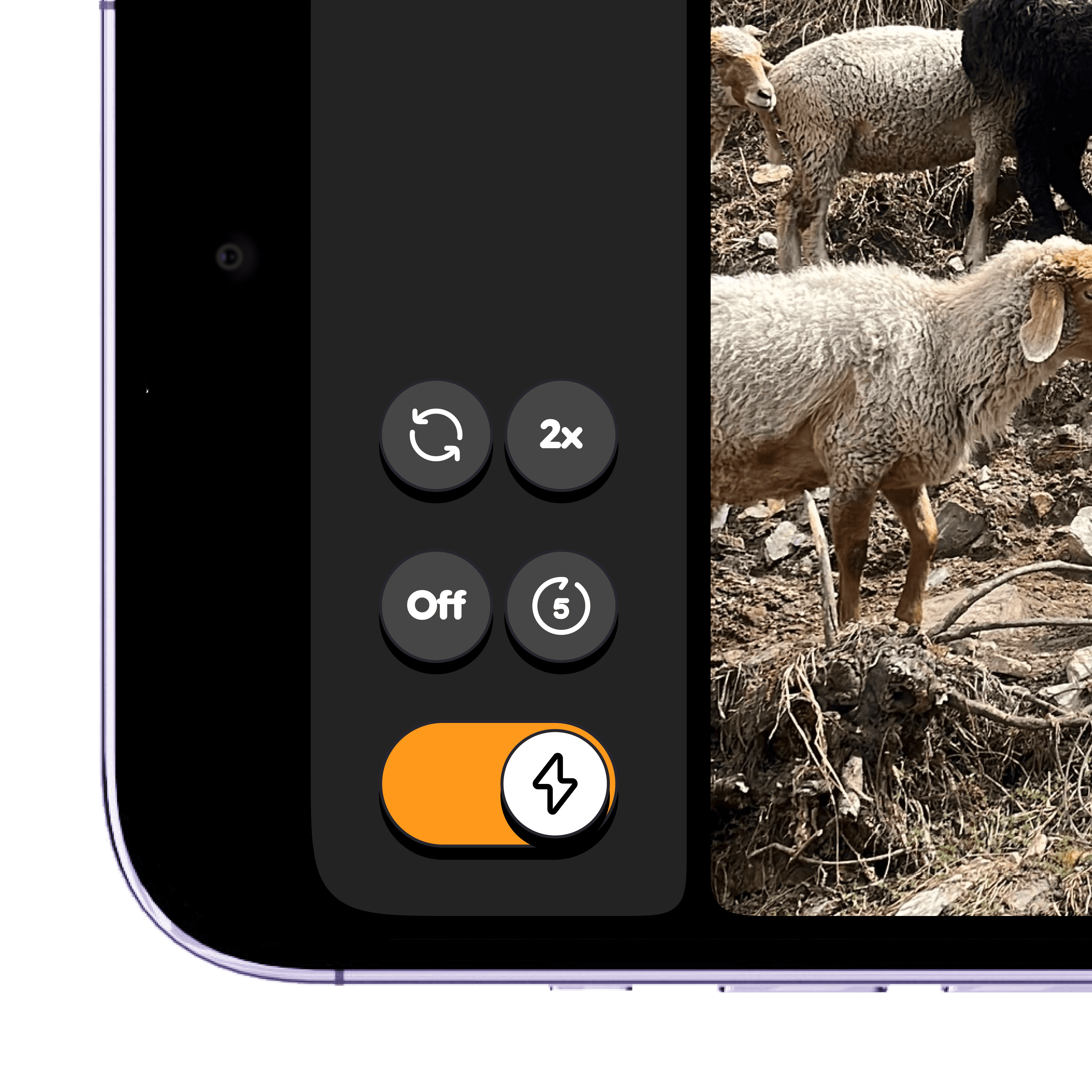 Camera flip and zoom, timer and flash. Not fancy but Important